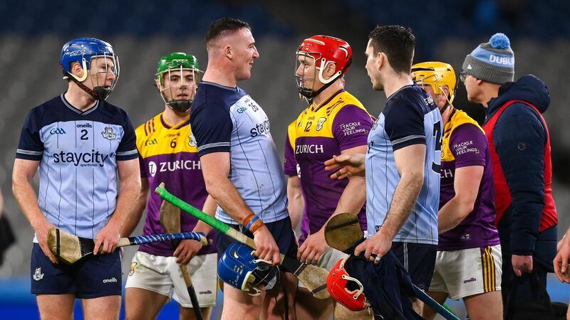 SEE YE NEXT TIME: John Hetherton of Dublin and Lee Chin of Wexford after the Allianz Hurling League Division 1B match between Dublin and Wexford at Croke Park in Dublin. Photo by Stephen McCarthy/Sportsfile